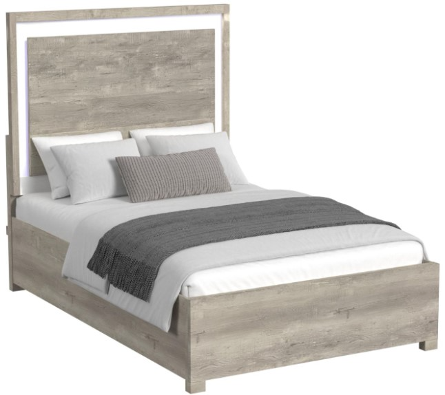 he San Matteo bed with LED light is an eye-catching addition to your bedroom. Constructed of durable engineered wood set in a striking dual toned finish, this piece is sure to become a focal point in any space.Read More