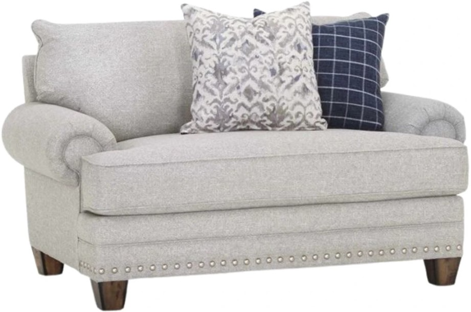 Upgrade your home decor with the Fletcher collection! Enjoy the versatility of reversible seat and back cushions, beautifully upholstered in a neutral light gray base cloth. Add a touch of sophistication with the included throw pillows and silver nailhead trim. Transform your space with elegance and comfort, order the Fletcher collection today!Read More