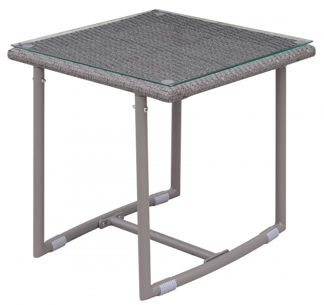 This contemporary outdoor patio set is all about comfort. The seating is contoured and cups you in soft padded tufted cushioning. The framing is minimal and does away with the solid sides typically found in patio sets. The glass top tables sit at a height where you won't need to bend while seated in order to reach your dink. It's going to be hard to get back up when you're being cradled like this.