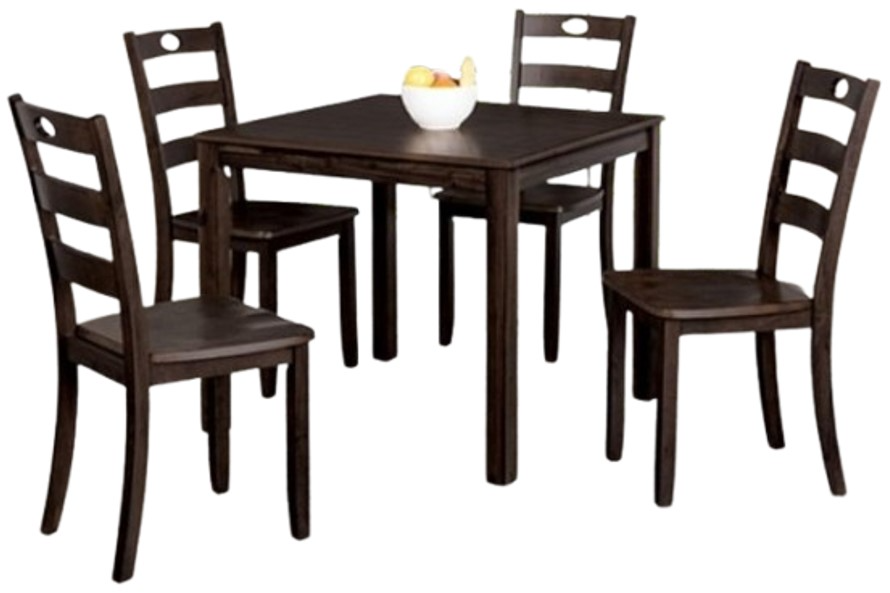 The Furniture of America® Lubbock 5-Piece Espresso Dining Table Set includes a sturdy rectangular table and four comfortable chairs, all finished in a rich espresso hue. This set combines durability with functionality, offering ample seating for family meals or gatherings. Its compact design suits both small and medium dining spaces.Read More