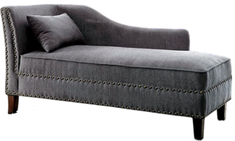 Add subtle color to your bedroom or living room with this stylishly upholstered chaise. The curved arm adds emphasis to the lengthy structure while nailhead accents pop against the smooth fabric.