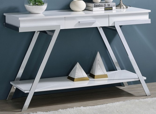 The table top and the open bottom shelf are both in a high gloss finish, complementing the chrome pretty nicely. Drawers are available, along with a lift top mechanism on the coffee table for extra storage and a more flexible piece.