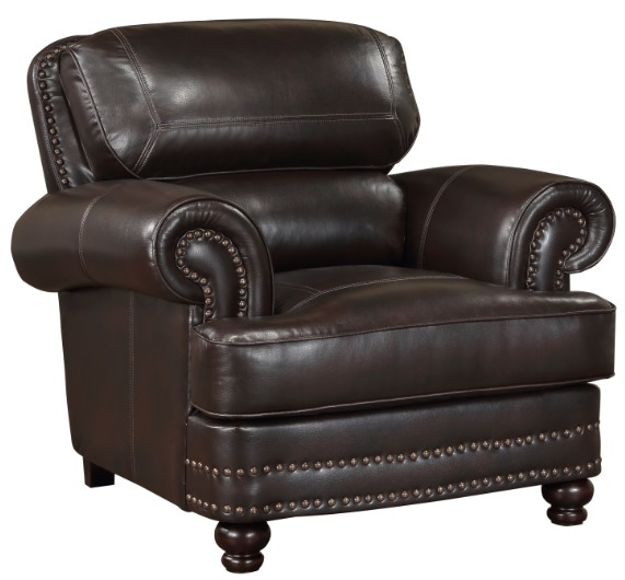 With accenting that pairs flared rolled arms, plush seating, nailhead trim and serpentine lines, the design of the Milford Collection results in an elegant seating option for your home’s traditional living room. Brown breathable faux leather upholstery covers the chair while providing classic detail to the timeless aesthetic.Read More