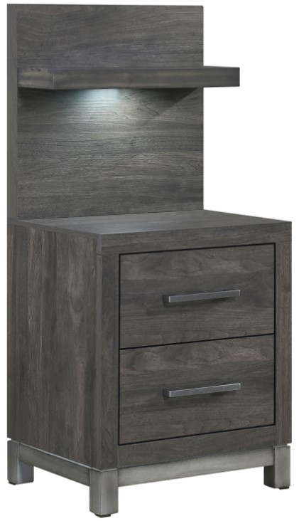 The Homelegance® Zephyr gray nightstand with wall panel offers functional bedside storage with a sleek gray finish. It features spacious drawers with smooth-glide mechanisms. The coordinating wall panel adds visual interest and enhances bedroom organization, blending convenience with contemporary bedroom functionality.Read More