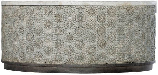 With a look of exotic elegance, the Greystone round cocktail table combines a serene monochromatic color scheme with a carved geometric floral pattern. Crafted of oak veneers and resin, this unique piece adds character to any space. Come closer to Melange, and you will discover something unexpected, an eclectic blending of colors, textures, and materials.Read More