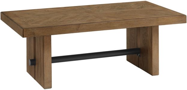 The Landmark living room collection has beautifully veneered table tops that feature a very unique sunburst pattern. The light saw mark accents and weathered oak finish gives this sleek modern collection a classic rustic feel.Read More